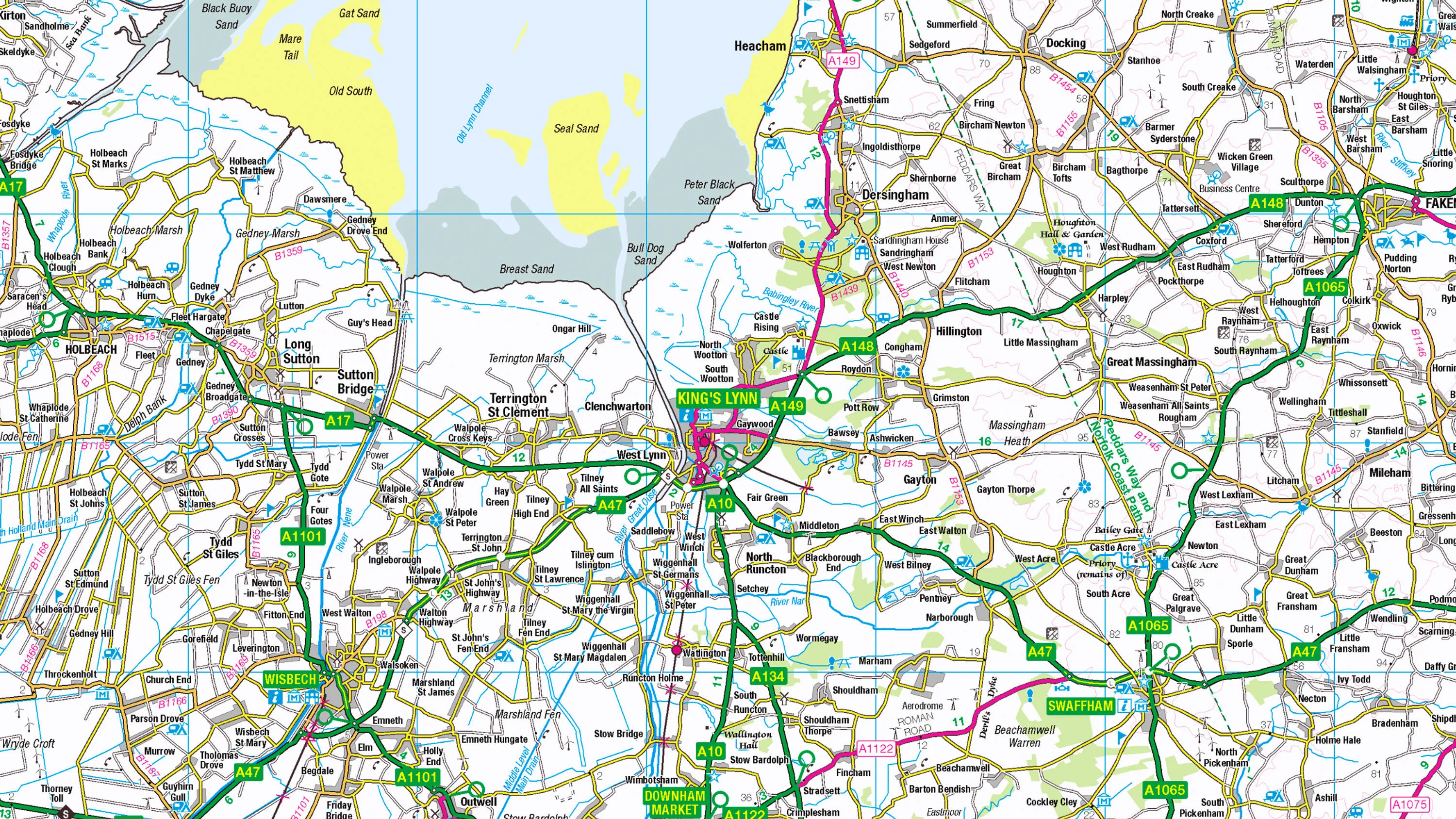 A regional backdrop map, containing motorways, main roads and country lanes.
