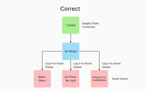 The supply chain contractor admin adds users from their own company. With the links set up, when the contractor user logs in, they select which asset owner company they are working for, using a pulldown. This then brings up the geographical area of the selected asset owner and all of the assets published on the platform in this area.