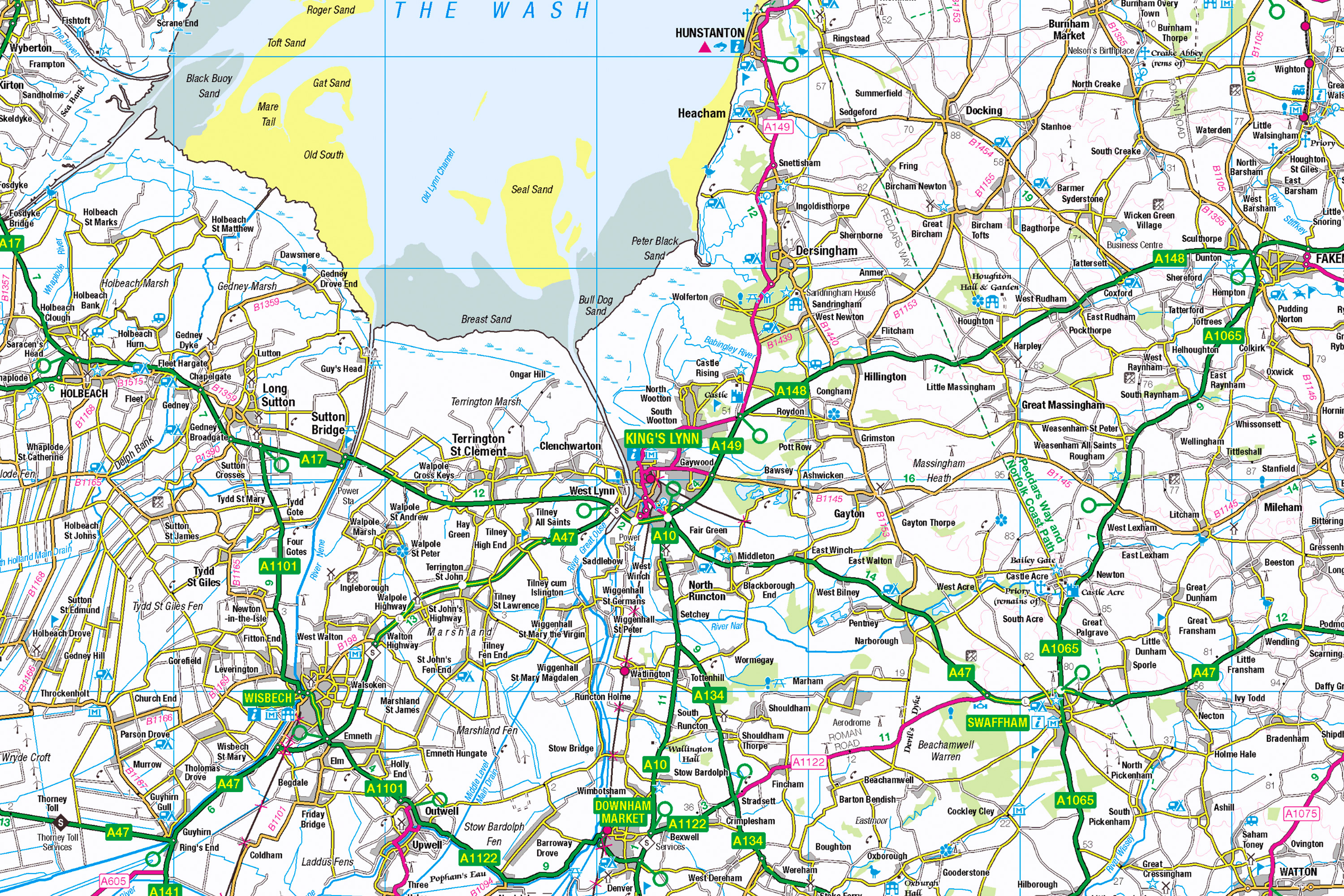 Motorways and main roads stand out, but you can also see country lanes clearly.